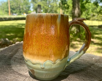 Handmade pottery mug, wheel thrown pottery mug, ceramic coffee cup with handle